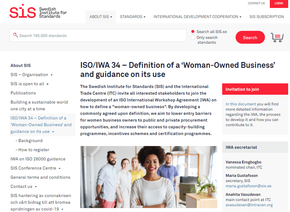 Dada la ausencia de un estándar acordado globalmente y de cara a solventar esta situación el ITC (International Trade Center) junto al SIS (Swedish Institute for Standards) han lanzado el proyecto de la creación del IWA 34 e invitan a todas las partes interesadas a unirse a su desarrollo.