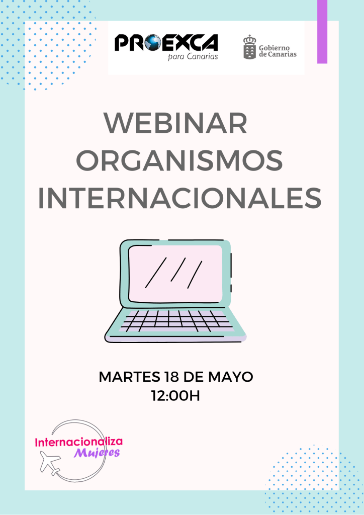En el marco del programa Internacionaliza Mujeres de PROEXCA (Sociedad Canarias de Fomento Económico SA), lanzada su segunda edición el pasado 20 de abril, el martes 18 mayo se ha realizado el tercer Webinar de los doce previstos. En esta ocasión, este va dirigido a las jóvenes estudiantes canarias para informarles e inspirarles en el itinerario sobre acceso profesional a organismos internacionales.