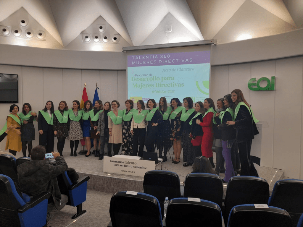 Hoy Mujer Exportadora ha tenido el placer de participar en la clausura de la X edición del Programa de Desarrollo de Mujeres Directivas de la EOI, que se enmarca dentro del Programa Talentia 360. Mujeres Directivas, de la mano de la Subdirectora General para el Emprendimiento, la Igualdad en la Empresa y la Negociación Colectiva de Mujeres del Instituto de las Mujeres, Begoña Suárez, y de la Directora de Programas Executive de EOI, Paloma Gómez-Martelo.