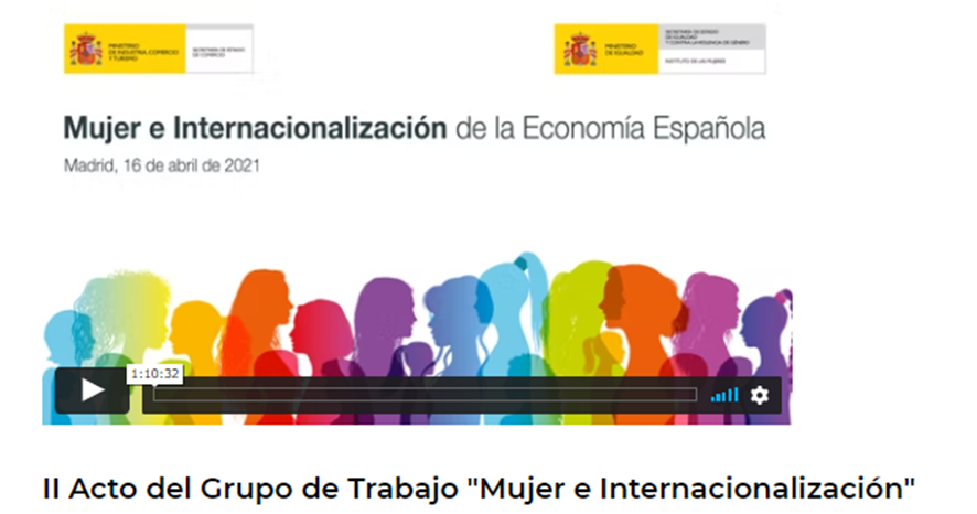 El 23 julio 2019, la Secretaría de Estado de Comercio convocó la primera reunión de un Grupo de Trabajo sobre “Mujer e Internacionalización”con representantes de diversos organismos públicos, universidades y asociaciones de empresarias, para concretar las acciones que permitirán impulsar el papel de la mujer en la internacionalización de la economía española. En este sentido, ambas instituciones, la Secretaría de Estado de Comercio (SEC) y el Instituto de las Mujeres se unieron para implementar cuatro mesas de trabajo sobre “Mujer e Internacionalización” en febrero del 2020 para identificar medidas concretas que se puedan poner en práctica por los respectivos organismos españoles con competencias para mejorar el papel de la mujer en la internacionalización de la economía española y el 16 de abril del 2021 se presentan las conclusiones del informe donde se recogen los compromisos adquiridos por el sector público y el privado para impulsar una mayor participación de las mujeres en la actividad internacional e identificar los factores que puedan obstaculizar su emprendimiento internacional para poner en marcha programas específicos.